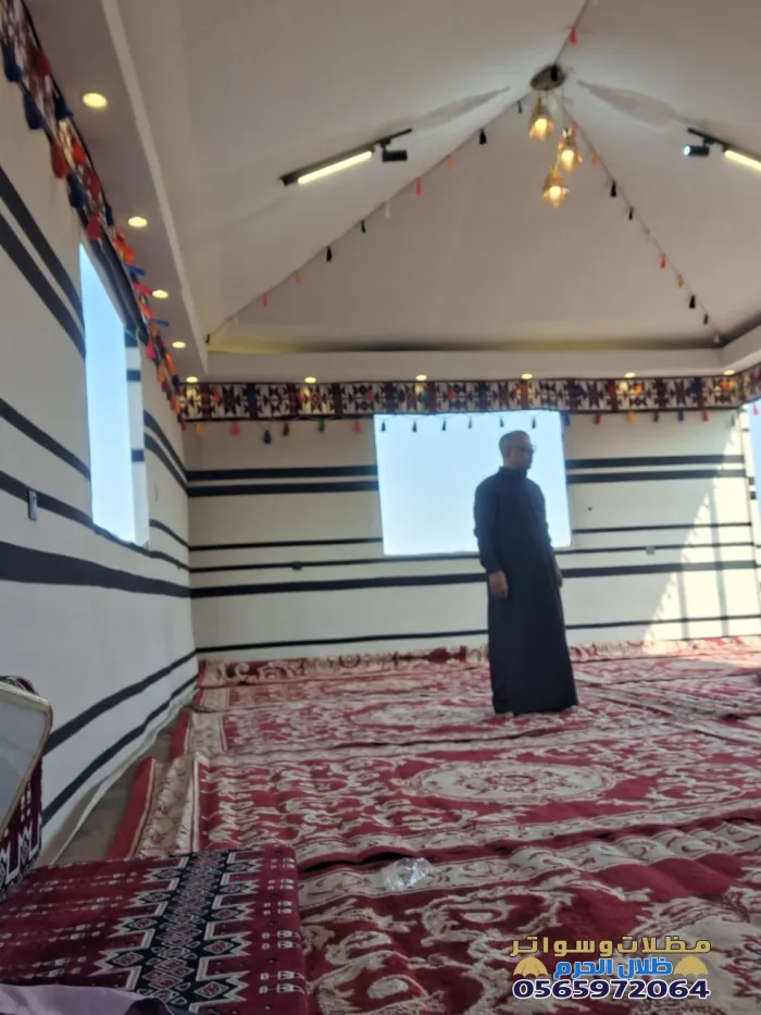 يمكنك تصميم بيت شعر فخم بإضافة أرضيات خشبية أو ستائر خارجية، بالإضافة إلى إضاءة داخلية لتعزيز الشكل الجمالي والوظيفي. التفصيل يوفر لك بيت شعر فريد يلبي كل احتياجاتك ويضيف قيمة للعقار.